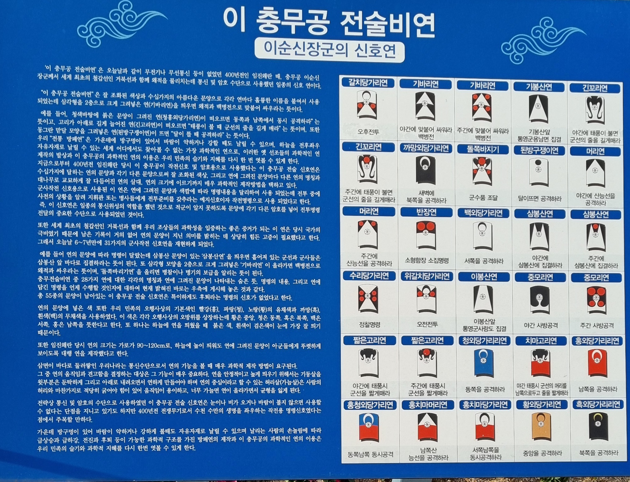 広報館経由地に李舜臣将軍が海の上で戦うときに使った各種 信号凧 看板 ...